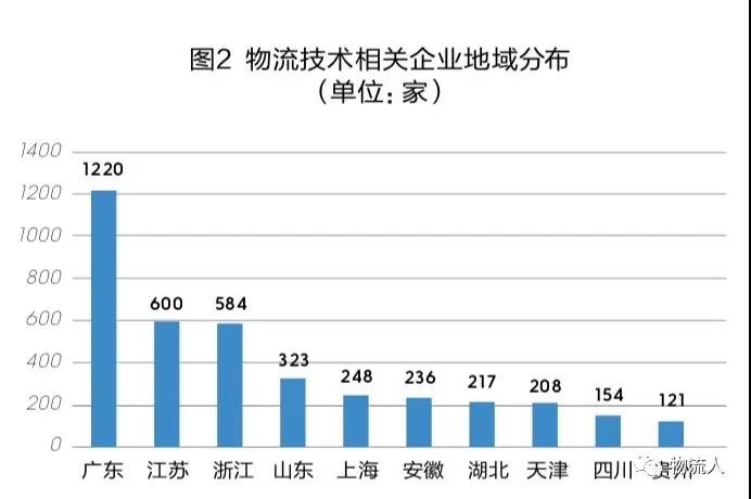 据企查查数据显示,截至8月13日,我国共有企业状态为在业/存续且关键词为“物流技术”的相关企业6188家。其中,广东省数量最多,达1220家,占所有企业总数的19.7%;江苏省和浙江省的相关企业数量分别排名第二和第三,为600家和584家。从注册量来看,2015年以来物流技术相关企业注册量波动式增长,2015年共注册893家,其后两年注册量有所减少,2018—2019年注册量稳步递增,2019年共注册1170家;从注册资本来看,物流技术相关企业注册资本在100万—1000万元的企业数量最多,占比高达67%,注册资本在1000万元以上和100万元以内的相关企业数量分别排第二和第三,为20%和13%。