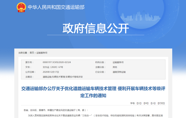 交通部曾公开发布《关于优化道路运输车辆技术管理 便利开展车辆技术等级评定工作的通知》,明确表明将进一步推进路货运车辆“三检合一”,要确保2021年4月1日前完成本省道路运输车辆综合性能检测联网系统的升级改造,落实货车“三检合一”政策