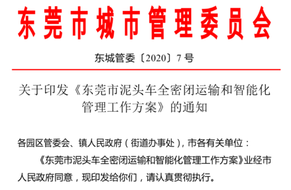 广东东莞出台《东莞市泥头车全密闭运输和智能化管理工作方案》,统一了泥头车车辆标准,具体通过“3步走”的战略力争到2021年6月底前,在全市范围内清退未经核准的泥头车运输企业和不符合标准的车辆